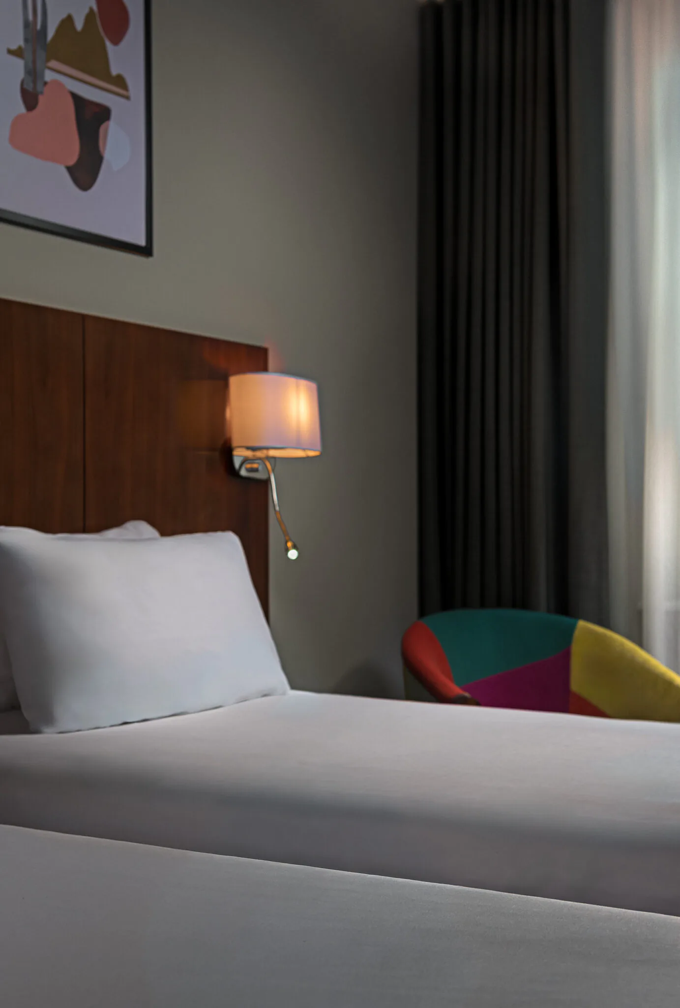 Effortlessly comfortable and exceedingly spacious, our magnificent King Rooms include a king size bed, LCD satellite TV and the ability to make specialty teas and coffee from your French press coffee maker. Some room also have a balcony, from which to enjoy your freshly-made hot brew, as you gaze out over the panoramic view of the city. With an integrated work area, complimentary WiFi and a laptop safe, this Limerick City accommodation is also ideal for those visiting for business.